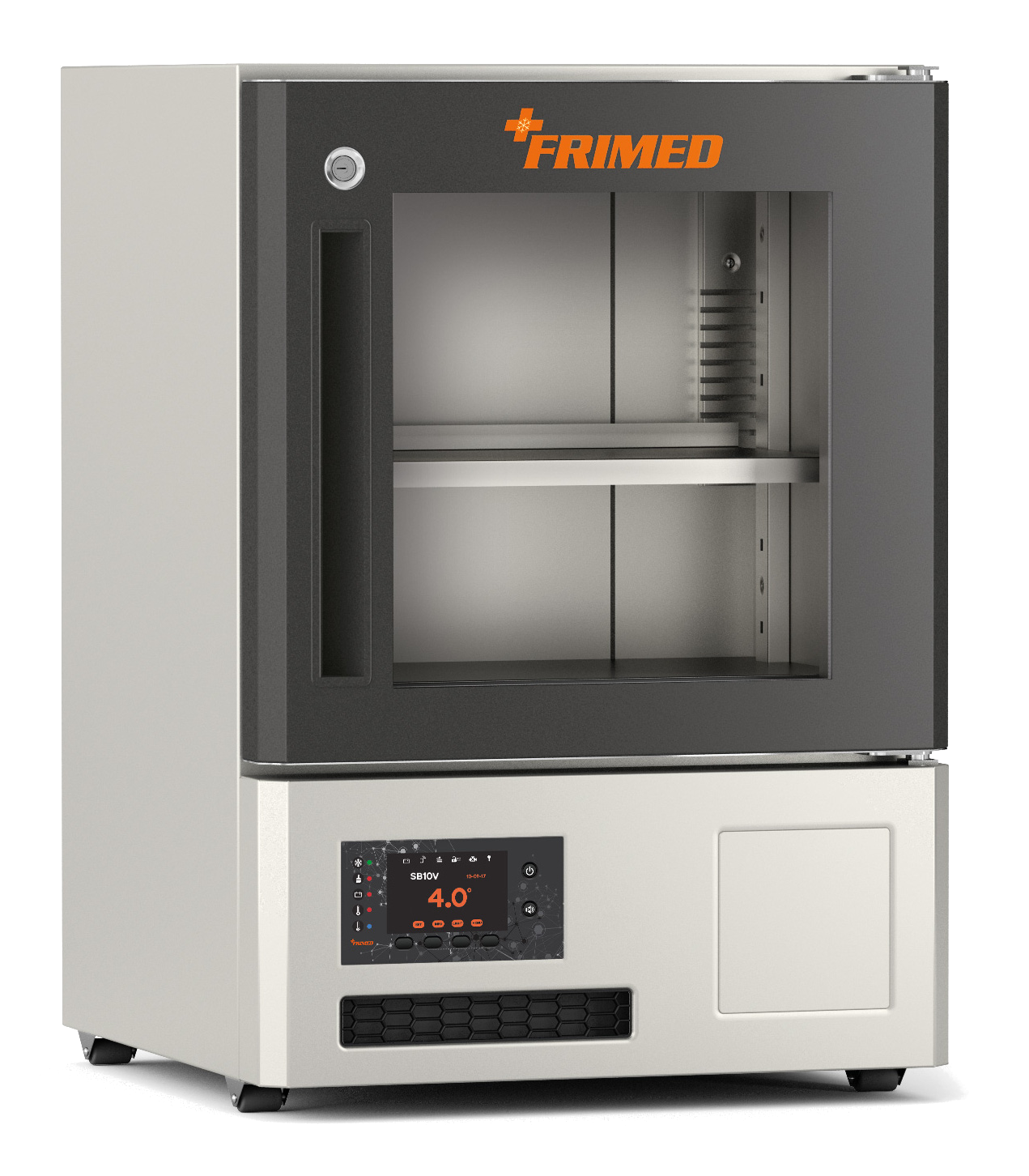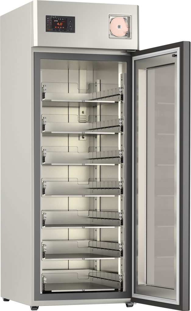 Panneau de commande à microprocesseur avec écran tactile LCD 4.3" et 4 touches mécaniques. Réglage et affichage de la température intérieure avec résolution 0.1°C. Contrôle de la température au moyen de deux sondes PT1000 indépendantes. Graphique de la température en temps réel (à sélectionner par l’utilisateur). Sonde numérique d’humidité (optionnelle). Sortie séquentielle RS232/RS485. Etalonnage numérique des sondes. Alarmes sonores et visuels de température haute et basse (au moyen d’une sonde indépendante), porte ouverte, efficience du condensateur, sondes en panne, coupure de tension lors du rétablissement du courant et coupure de tension pendant l’évènement avec enregistrement des données et des alarmes (au moyen d’une batterie de secours optionnelle), batterie déchargée ou endommagée. Mémoire des dernières alarmes visible sur l’écran